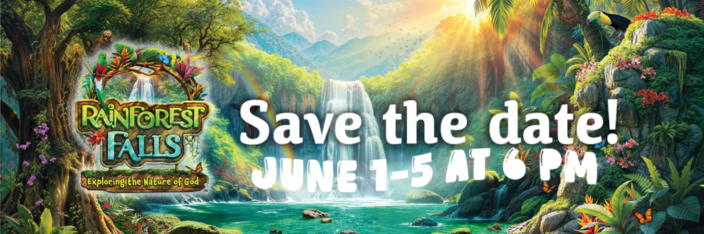 Join us June 1–5 at 6 PM each evening for an exciting week at Rainforest Falls!